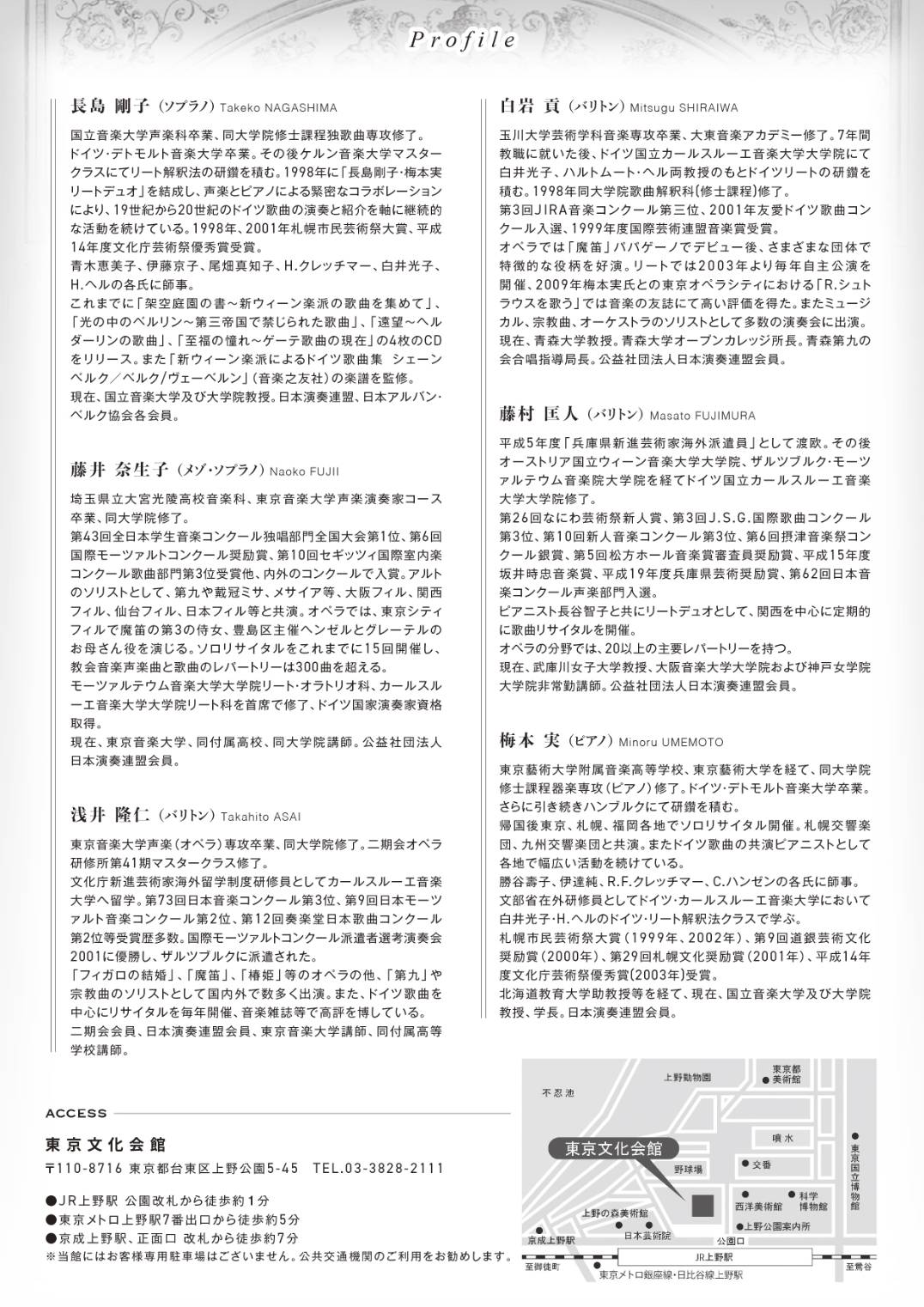 公演チラシ(表)(カーソルを合わせてクリックすると拡大します)今秋もリサイタル開催が決定しました。今回はムラマツリサイタルホール(新大阪駅より徒歩約5分)でおこないます。アットホームな雰囲気と最良の響きを醸し出すこのホールで、今年共に没後60年を迎えるR.シュトラウス(R.Strauss)ならびにプフィッツナー(H.Pfitzner)のリートの珠玉の数々をお楽しみください